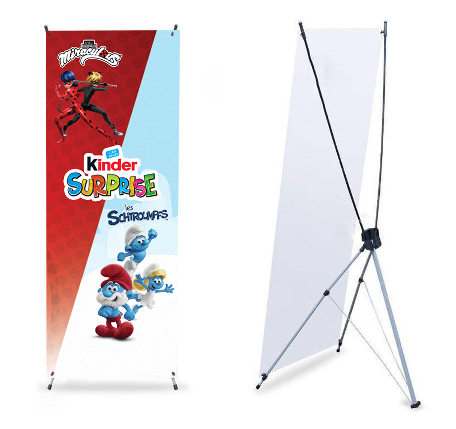 Un x banner est ultra léger, moins stable qu’un roll’up. Il sert pour l’habillage d’un stand parapluie, pour l’affichage de promotions dans les magasins. Il existe des modèles compact s’intègrant parfaitement dans les petits espaces.